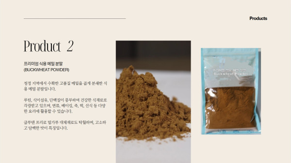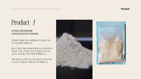 | 프리미엄 식용 생 메밀분말 | 최상급 | 1톤 | |