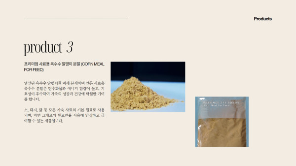 | 프리미엄 사료용 옥수수 알맹이 분말 | 최상품 | 1톤 | 2,800 |